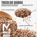 INGREDIENTS: Chicken, Water, Tri-color Quinoa, Cornstarch, Vegetable Oil, Salt, Sesame Oil, Onion Powder, Sugar, Citrus Fiber, Garlic Powder, Mushroom Powder, White Pepper.