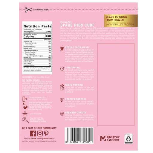 Key Information Frozen About The Product Pork Cube highly trimmed & ready to used, no added artificial coloring & flavours. it is cut ...